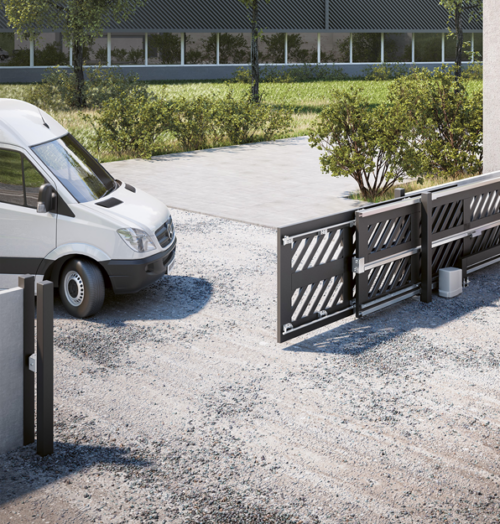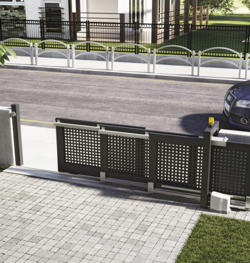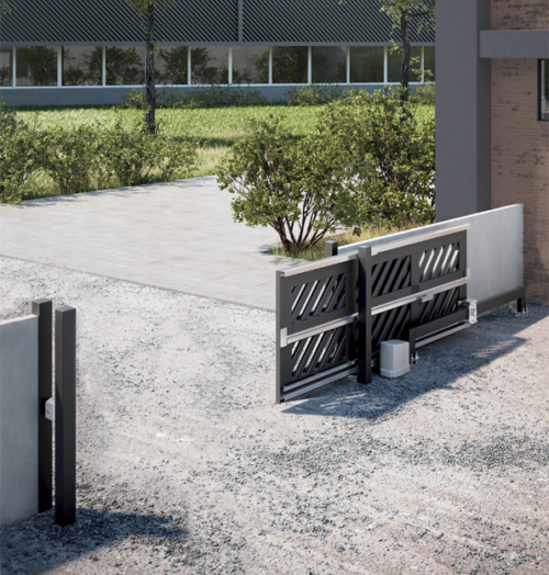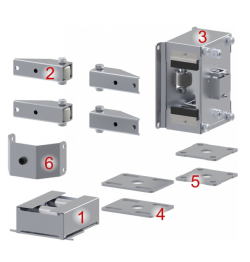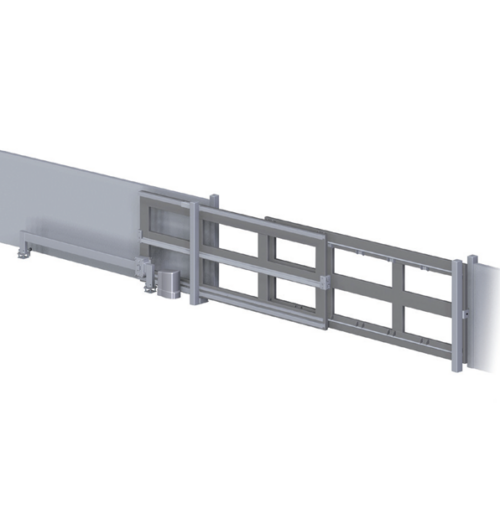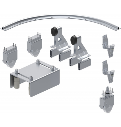 Kit de herrajes para una puerta autoportante de 2 hojas, con un máximo de 8 metros de luz de paso y 500 Kg de peso (entre las dos hojas) Ref.KD2150.100Pinchando en el siguiente enlace podrá ver los Detalles de montaje -