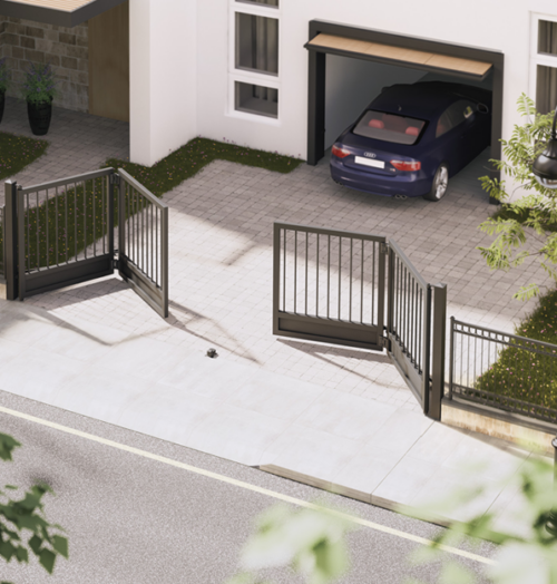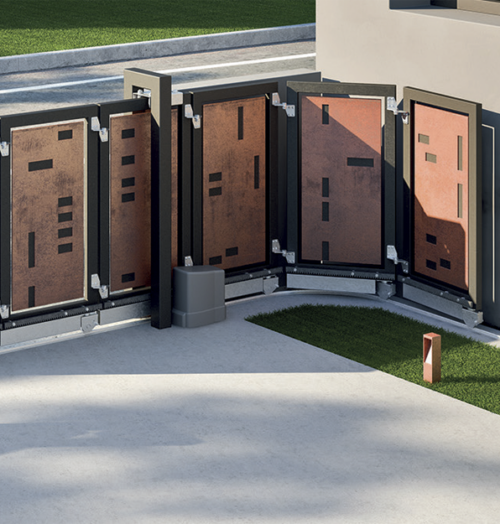 Kit de brazo articulado y bisagras para la automatización de una puerta batiente de 2 hojas máxima luz de paso 5 metros . Kit Bi-Folding Ref. KC7101.160 Detalles de montaje Kit de brazo articulado y bisagras para la automatización de una puerta batiente de 2 hojas máxima luz de paso 8 metros . Kit Bi-Folding Ref. KC7110.180 Detalles de montaje -