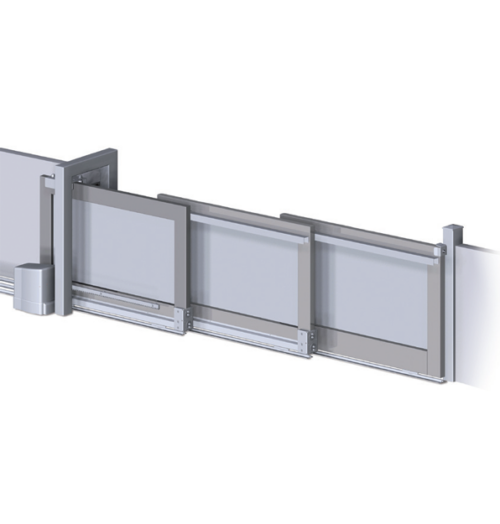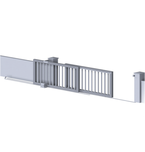 Kit de herrajes para puerta telescópica de dos hojas.Pinchando en el siguiente enlace podrá ver los Detalles de montaje Tabla de dimensiones:Referencia Luz de paso max. Peso max. 2ª hoja KA5100.404 4 metros 300 Kg KA5100.408 8 metros 300 Kg KA5100.411 11,4 metros 300 Kg KA5100.415 15,4 metros 300 Kg -